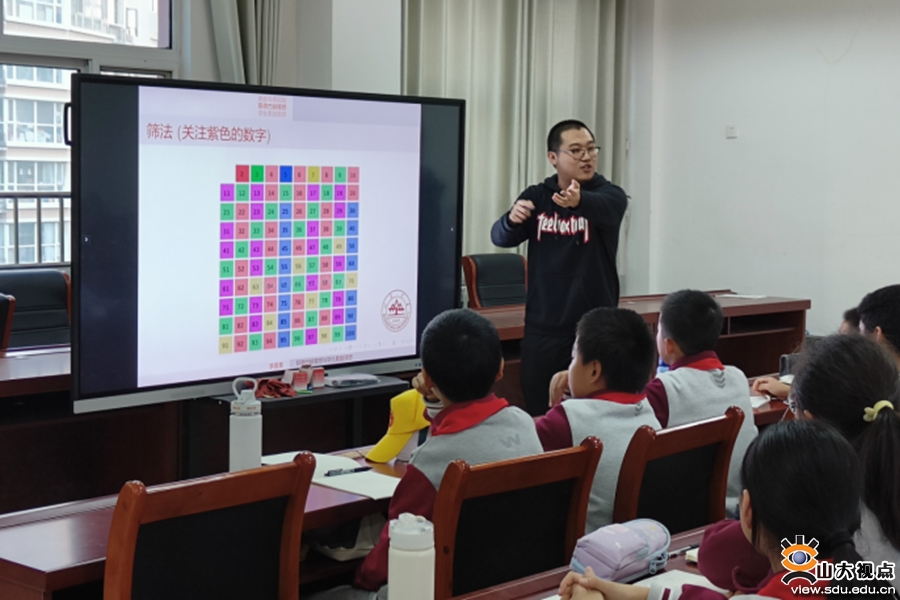 凝聚优质人才,服务基础教育。为探索创新人才培养模式,完善基础学科拔尖人才培养的长效机制,山东大学数学学院与历城区实验小学联合成立“少年发展研究院”,开展“研究生进课堂”活动。11月16日,数学学院学生党支部的张旭、孙铭、李嘉旻走进历城区实验小学,与同学们进行交流。李嘉旻为历城区实验小学六年级数学班的学生带来“哥德巴赫猜想与孪生素数猜想”趣味课堂,从课本中素数合数的定义出发,介绍了哥德巴赫猜想和孪生素数猜想的内容及发展历史,通过趣味小游戏引导学生用“筛法”寻找一百以内的素数,并以自己与孪生素数猜想的故事在同学们心中种下数学的种子,鼓励大家坚持梦想,追求真理,受到了师生们的热烈称赞。