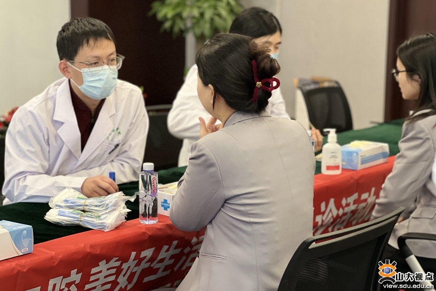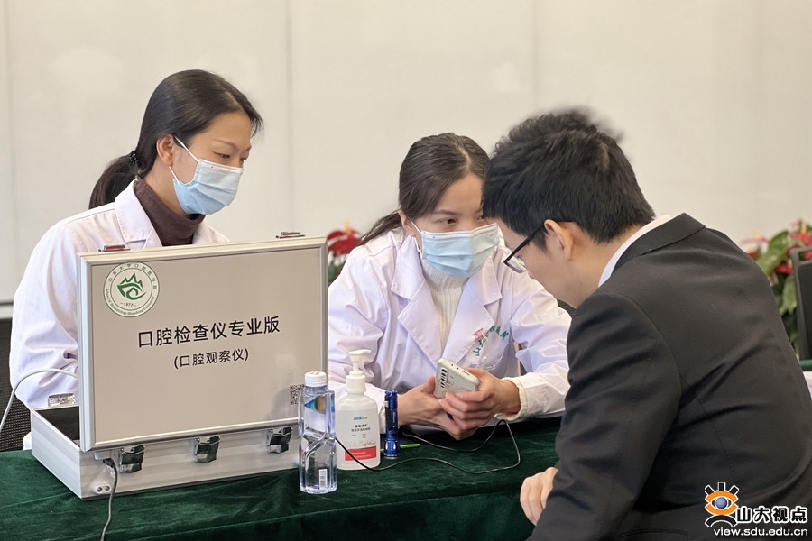 活动现场,学院(医院)康虹院区杨彬杰、惠婷、王英姿三位医师为前来咨询的职工进行了详细的口腔检查,并结合大家的年龄、口腔健康状况给出了针对性的治疗意见。护士长王迎迎及护士李双双通过义诊观察仪对部分职工进行了口内健康情况筛查,现场科普了刷牙的正确方法及如何正确使用牙线等口腔保健知识。“感谢山大口腔为我们提供的义诊服务,让我们对自己的口腔健康状况有了进一步的了解,也对口腔保健的重要性有了新的认识”,当天的义诊活动得到了招行职工的一致好评。