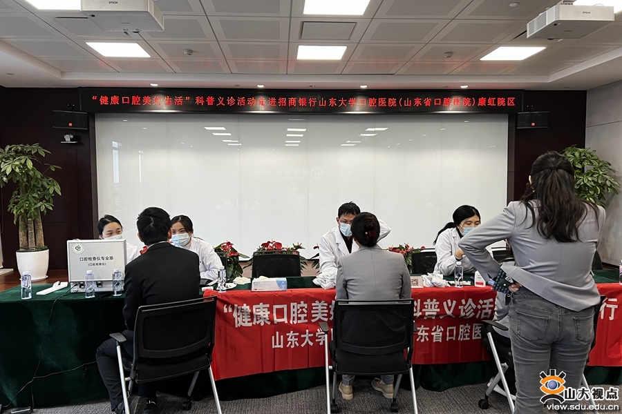 [本站讯]2月1日上午,山大口腔“健康口腔 美好生活”口腔义诊活动走进招商银行济南分行,为招行职工进行口腔健康知识宣教及口腔检查,帮助大家提高口腔保健意识,促进口腔健康行为养成。