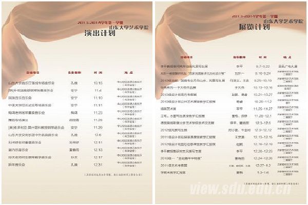 艺术学院音乐系舞蹈、声乐、器乐等专业,美术系国画、油画、设计、动漫等专业的老师结合学院本学期多项重大赛事、活动,提出了多场演出、汇报音乐会、展览的计划。经院、系领导多方协商,最终确定了本学期演出和展览的具体演出计划,并正式公布。