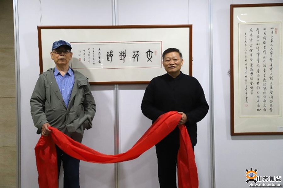 随后,徐超教授、龚鹏程教授共同为“文苑艺廊”书画展览揭幕。郭春晓表示,本次展览表现出文学院自觉践行习近平文化思想、主动提升文化传播能力的高度责任感,希望本次展览能为山东大学通识教育、院际文化互动作出贡献。