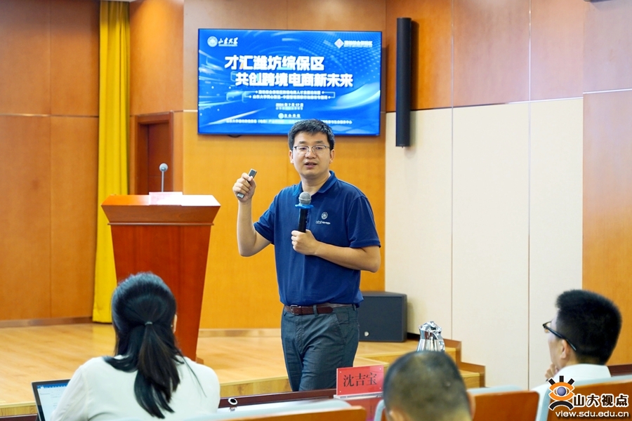 本次活动以“才汇潍坊综保区 共创跨境电商新未来”为主题,分专题讲座和跨境电商人才发展论坛两个阶段进行,由保税区党工委委员、党群工作部部长沈吉宝,山东大学管理学院院长助理、高层管理教育中心主任张晓峰教授主持。