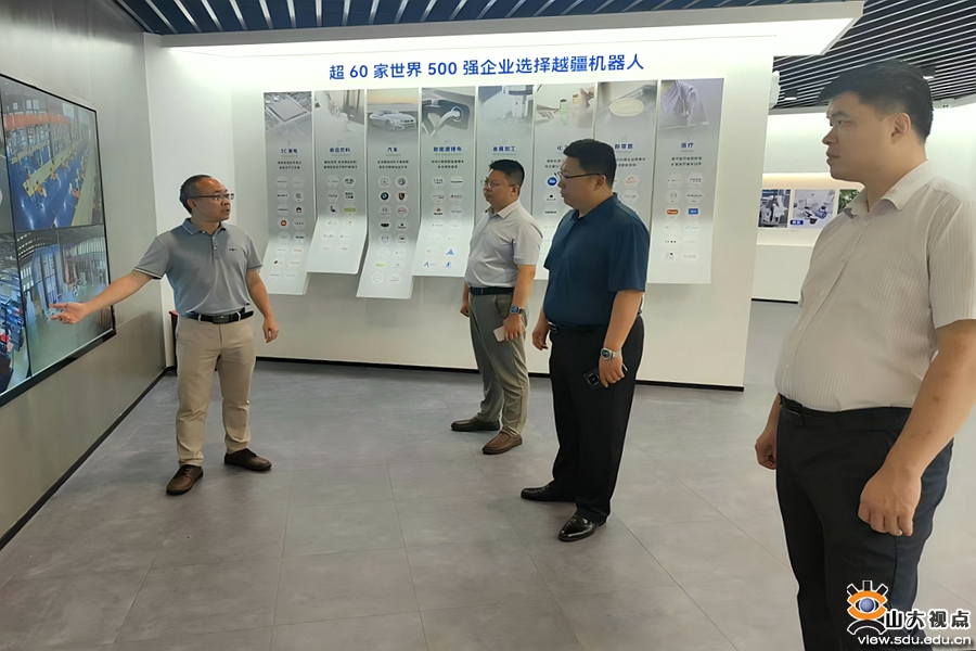 学院一行参观了越疆科技展厅,越疆教育事业部副总经理唐海峰介绍了公司的发展历程、行业应用及专利获奖等情况。越疆科技有限公司创始人兼CEO、山东大学校友刘培超阐述了越疆科技的技术创新和市场布局,以及未来在智能机器人领域的发展规划。他表示,近年来越疆科技一直致力于将先进技术与教育相结合,通过产教融汇助力教育高质量发展。