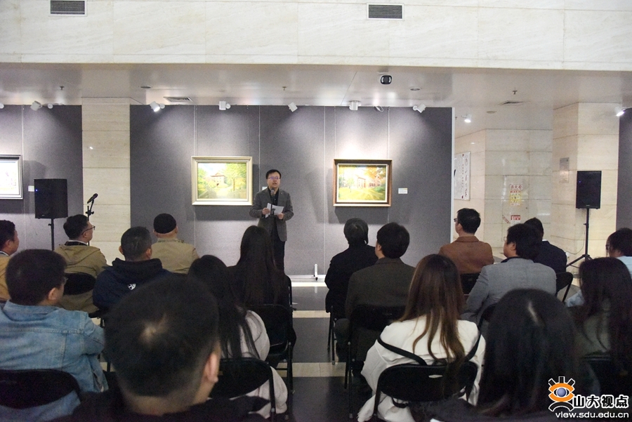 [本站讯]11月12日,山东大学首届校园风景写生作品大赛优秀作品展开幕式在中心校区举行。校党委副书记王君松出席活动。