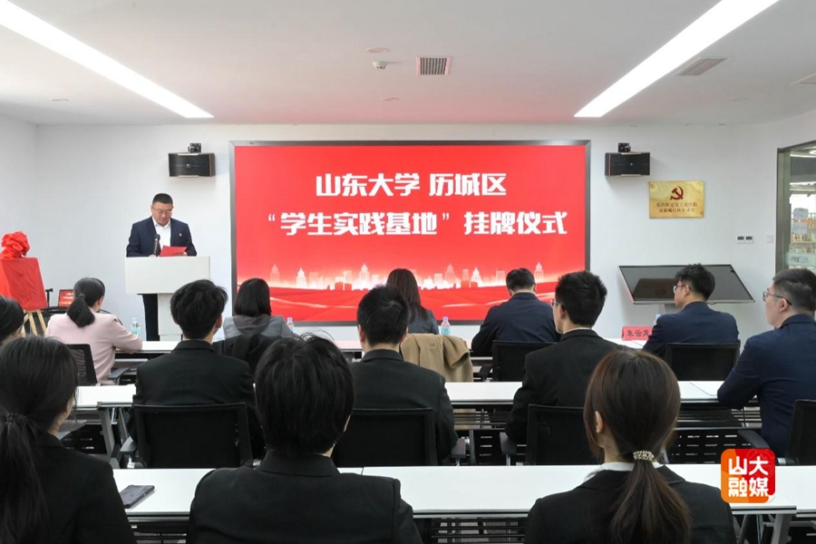 [本站讯]近期,山东大学与港沟街道在融创文旅城溪山居社区党群服务中心举行“山东大学学生实践基地”揭牌仪式。山东大学团委副书记郑柔澄,数学学院党委副书记张艳强,历城区团委副书记王超慧,港沟街道党政办公室副主任、团工委书记张琪琦出席活动。