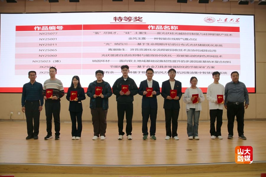 决赛采用展台评审和答辩的形式,参赛选手向评委们阐述并展示具有新思维、新思想的实物、软件、设计和社会实践调研报告等作品。随后由竞赛评委会对作品展示环节和答辩环节分别进行评审打分,并对作品提出修改意见。最终评审委员会综合评选出特等奖作品15项、一等奖作品25项,二等奖作品39项。其中,特等奖作品将代表山东大学参加第十八届全国大学生节能减排社会实践和科技竞赛。