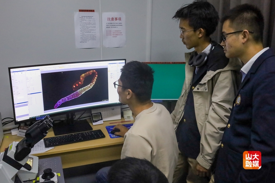 活动中,讲解员带领学生和家长们依次走进科研实验室、大型仪器和技术服务平台及童第周先生纪念展厅。在科研实验室,讲解员介绍了类器官在疾病建模和药物筛选中的独特优势,现场演示了斑马鱼胚胎发育的荧光成像。在斑马鱼养殖室,讲解员详细讲解了“水中小白鼠”斑马鱼的生活习性、养殖方法及其作为科研模式动物的优点。在玉米温房与苜蓿温房,讲解员结合幼苗培育,介绍了基因编辑技术在提升作物抗逆性中的应用等有关知识。