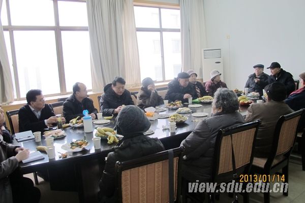 首先,刘明芝向在座的老教师们汇报了领导班子的换届情况,并对他们的到来表示欢迎。王韶兴作为新上任领导代表,问候了马列部的各位老前辈,充分肯定马克思主义学院优秀的学术资源和人力资源,主张大家向老教师们学习,将对马克思主义的信仰、对优秀品质的追求继续发扬光大。王韶兴还讲到,学院在学科建设、课程建设等各方面都已打下了良好基础,希望今后能继续努力,把课程建设、学科建设、队伍建设、制度建设和民生建设全面向前推进,要强调质量、提高水平、扩大影响。王韶兴希望老教师们能为今后马克思主义学院的发展出谋划策,提出意见和建议,并且由衷地祝福老教师们身体健康,新春愉快。