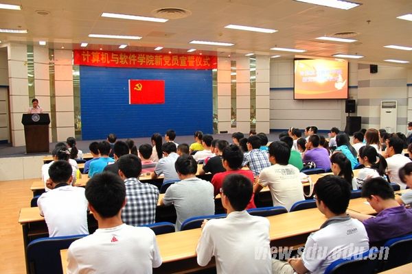 [本站讯]6月12日下午,计算机与软件学院党委新党员宣誓大会在软件园校区举行,计算机与软件学院党委书记汤晋立、党委副书记贺平出席会议。