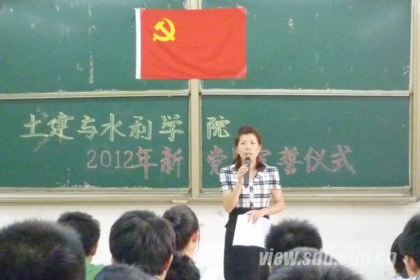 [本站讯]6月14日下午,在即将迎来建党91周年之际,土建与水利学院新老党员分别在千佛山校区水利馆三层报告厅和兴隆山校区教学楼举行迎“七•一”党员宣誓大会。学院党委副书记胡岩、孙玉玲出席大会。