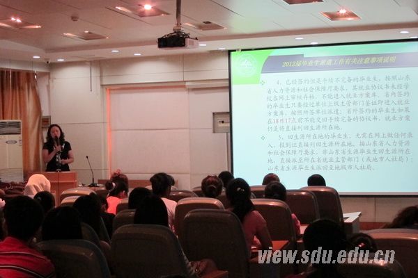 [本站讯]6月13日,口腔医学院在趵突泉校区举行了2012届全体毕业生大会。针对毕业生离校工作进行部署,学院党委副书记郭春晓出席会议并讲话,全体毕业生参加了会议。
