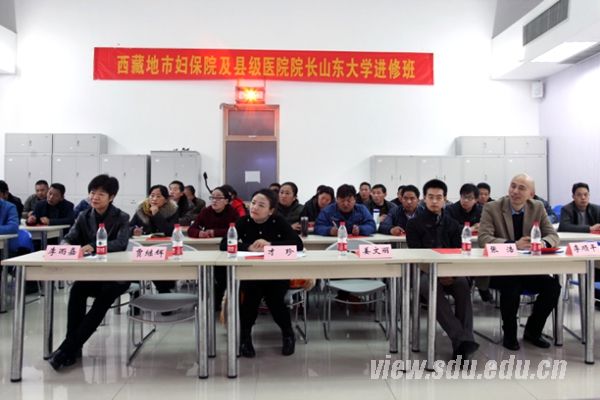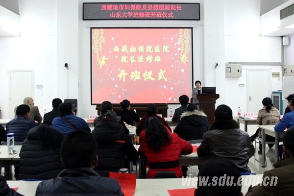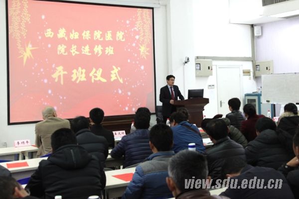 [本站讯]12月12日,由医药卫生管理学院承办的中澳西藏卫生能力建设项目“西藏地市妇保院及县级医院院长进修班”开班仪式在趵突泉校区举行。医药卫生管理学院直属党支部书记李雨嘉主持开班仪式,西藏自治区卫生与计划生育委员会外事办公室主任才珍,山东大学齐鲁医学部继续教育学院主任姜文丽、副主任张浩,医药卫生管理学院常务副院长孙强等出席开班仪式并致辞。