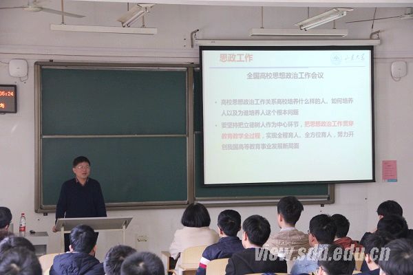 报告中,李术才传达了党的十八届六中全会精神,介绍了国内外政治形势,要求全院师生研究全面从严治党重大问题,仔细研读《关于新形势下党内政治生活的若干准则》和《中国共产党党内监督条例》,从思想和行动上与党中央保持高度一致。此外,他还传达了全国高校思政工作会议精神,要求学院教师把思想政治工作贯穿教育教学全过程,紧抓思政课,坚持教书和育人相统一,以德立身,以德立学,以德施教。他说,思政工作从根本上说是做人的工作,必须围绕学生,关照学生,服务学生。