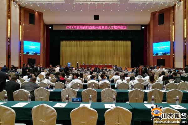 在2017年贵州省黔西南州高素质人才培养论坛上,拓展组就如何提升贵州省高中教育质量、为高校输送更多高质量教育生源等问题展开了深入交流。期间,拓展组还参与了黔西南州教育局与中国教育在线组织的高校与考生及考生家长见面咨询会,与部分家长及学生互动交流,答疑解惑,有效增进了家长及学生对山大的了解。