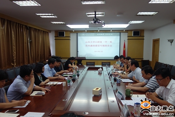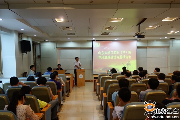 [本站讯]7月26日,口腔医学院举办党风廉政建设专题座谈会,邀请山东省人民检察院职务犯罪预防处处长田中庆,济南市检察院职务犯罪预防处处长毕朝暾,济南市历下区人民检察院职务犯罪预防科科长、全国模范检察官吕晓蓓来院座谈,并作报告。院长徐欣致欢迎词,院党委书记赵华强主持座谈会,院党委副书记吕光平主持报告会。