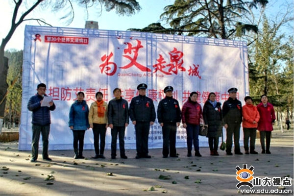[本站讯]11月26日,在第30个世界艾滋病日的前夕,口腔医学院积极参与在英雄山举办的第六届“为艾走泉城”志愿活动。活动由济南市市中区疾病预防控制中心等单位主办,济南市多所高校学生参与其中。活动的主题是“共担防艾责任,共享健康权利,共建健康中国”,号召大众积极参与艾滋病的防范,珍惜来之不易的健康,共同建设健康和谐的社会。