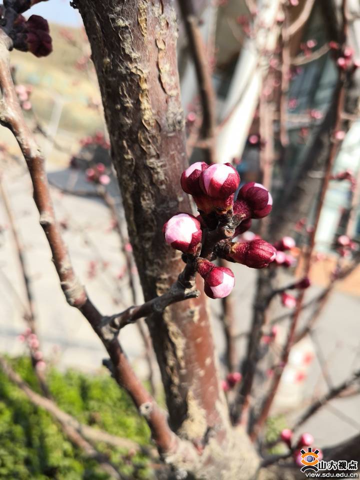 圆鼓鼓的玫红花苞,憋着劲结成美丽花骨朵,为春天增添一抹鲜艳
