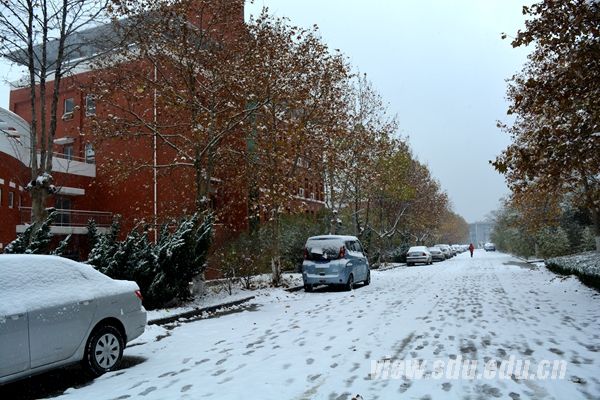 雪落无声,涤静万物,淡然间天地俱白。如一首极羞怯又极真切的情诗,悄然而诵,天下皆知。人行在这样一场雪中,不知不觉白雪染头。走吧,走在落雪的校园,与你我挚爱的山大共淋一场雪,一路到白头……