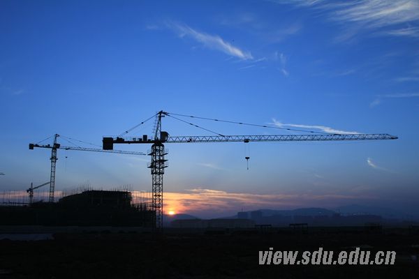 落日的余晖洒落在海面,成群的海鸥飞向蓝天。错落有致的楼宇,高大庄重的图书馆,神秘诱人的天文台,与蓝天白云相伴,与文心湖畔相拥,在这独特的秋天里山大学子相守于威海,相约于青岛