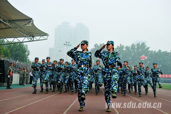 山东省军区政治部副主任吴巨峰大校、济南军区政治部干部部人才办副主任赵磊中校、济南军区综合训练基地学生军训办公室主任刘鹏大校、济南警备区副司令员王晓青大校、济南军区政治部干部部人才办干事陈军少校,山东大学党委宣传部、本科生院、党委学生工作部、后勤保障部、公安处、合作发展部、团委等有关部门负责人,部队及各学院相关负责人,全体参训教官、干部和学生参加了阅兵典礼。