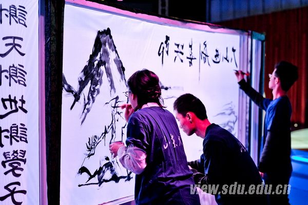 《江南style》拉开活动序幕 中央电视台主持人孙小梅(右)、付玉龙(左)主持展演活动 山东大学与中央电视台互赠礼物 山大学生会主席冯学知(右一)表演《大师云游》 付玉龙(右三)与山大学生演出由山大学生创作的即兴喜剧《元芳,你怎么看?》 刘建鸣、过彤、《谢天谢地,你来啦》栏目组制片人王雪纯、山东大学党委宣传部部长李平生、《谢天谢地,你来啦》栏目组主编王宁和冯锡彬等与现场观众进行多层面的互动 山大书画协会与国学社带来精彩的传统歌舞和倒笔书法表演 山东大学即兴喜剧社成立 中央电视台为参演学生颁发纪念品 节目《相亲相爱》 活动现场 王雪纯(右二)、王宁(右一)接受媒体采访