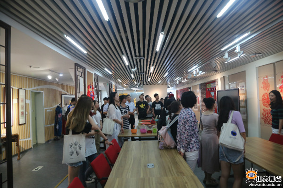 活动中,在国际教育学院教师崔溶的带领下,老师和同学们先后对古代礼仪、古代乐器、制作拓片、木板年画、剪纸、茶道、汉字文化、京剧国粹等进行了参观学习和体验。
