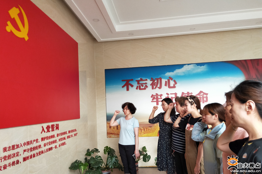 [本站讯]为更好地带领党员回顾党的历史,缅怀革命先烈,进一步提升党员的责任感、使命感,坚定理想信念、强化政治意识,不忘初心,推进主题教育往深里学、往心里走,6月20日,山东大学幼教服务中心总支第三党支部开展“参观党史馆、重温红色情”主题党日活动,组织全体党员、入党积极分子、团员青年集体参观中国共产党山东省党史陈列馆,重温入党誓词,进行党性教育。