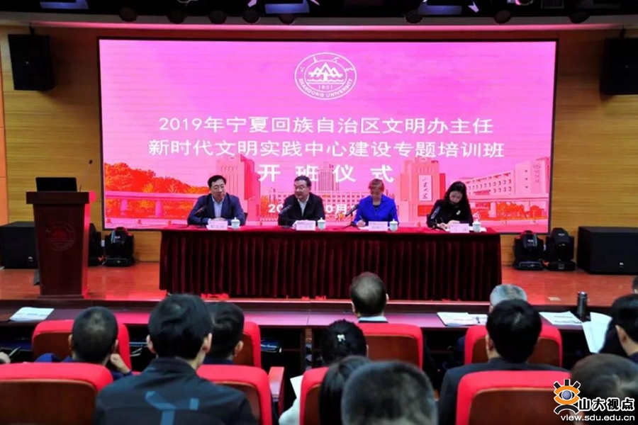 [本站讯]10月14日,宁夏回族自治区文明办主任新时代文明实践中心建设专题培训班在山东大学中心校区举办。来自全区各市、县(区)的48名文明办主任齐聚齐鲁大地,就推进文明城市创建等工作进行交流培训。中共宁夏回族自治区党委宣传部一级巡视员黄湘宁、山东省文明办副主任孙文利、山东大学继续教育学院院长、中华美德教育学院执行院长靳光华出席开班仪式并讲话。开班仪式由中共宁夏回族自治区党委宣传部文明创建处处长马萍主持。