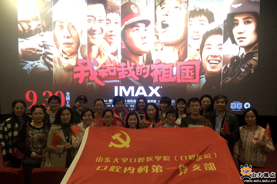 [本站讯]为庆祝中华人民共和国成立70周年,激发广大师生医务员工爱国主义精神和奋斗热情,持续深入开展“不忘初心、牢记使命”主题教育,10月24日,口腔医学院机关第一党支部联合口腔内科第一党支部及学生党支部观看新中国成立70周年献礼片《我和我的祖国》。学院(医院)党委书记吕波,副书记齐山华,副书记、纪委书记陈国军到场观看。