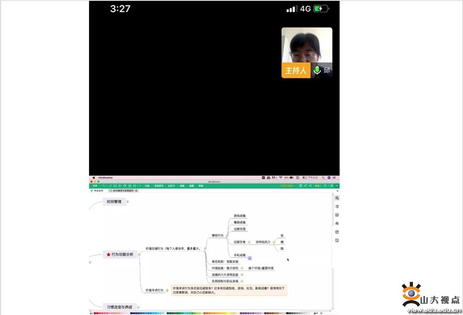 邱瑶就疫情期间同学们长期宅家学习出现的问题进行剖析,从时间管理、亲密关系、压力焦虑三方面给同学们分享宅家保持良好心态的方法。在时间管理上,要把事情按紧急程度和重要程度分类完成。长期在家会出现懒散、效率低下等现象,可以通过改变周围环境、改变行动方式、增加监督等方法有效管理时间。在与父母家人的亲密关系处理上,要重视沟通在亲密关系中的重要作用,遇到问题不要以自我为中心,通过沟通交流共同面对问题,把“我VS你”转变为“我们VS问题”。要学会恰当的表达,努力让自己想说的话恰好是别人想听的。在压力和焦虑情绪管理上,要认识到每个人都会有的正常情绪,大多数同学会对考研复试和毕业设计产生焦虑,有焦虑后要采取行动,积极改变,把焦虑和压力转化成我们不断前进的动力。
