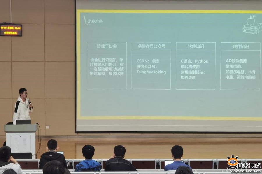 [本站讯]为引导学生明确学涯职涯发展目标,增强学生对科创竞赛知识的深入了解,提高工科生的实践能力,培养创新思维,4月9日,控制学院举办第三期“青年说”科创经验交流会。本次讲座主讲人是2017级自动化科学班宋睿和2018级卓越工程师班张步喆两位同学。宋睿以“科创与保研的关系”这一问题为切入点,结合当今国家科创战略、学校学院政策等进行分析,并讲解了电子设计竞赛的相关事项;张步喆通过讲解智能车车模、主控芯片等知识,深入浅出地为同学们介绍了智能车竞赛的相关赛制流程。交流分享的最后阶段,宋睿和张步喆解答了同学们关于科创竞赛的问题。