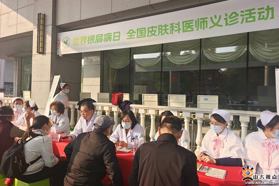 [本站讯]10月29日是第21个“世界银屑病日”,主题是“让生命回归生活”。为了帮助大家正确认识银屑病,了解科学规范的治疗理念,山东大学齐鲁医院皮肤科积极响应中国医师协会皮肤科医师分会、中华医学会皮肤性病学分会的号召,开展“世界银屑病日”义诊活动。义诊活动在山东大学齐鲁医院华美楼南门平台开展。皮肤科副主任蔡大幸带领由多位皮肤科医护专家组成的义诊团队,在现场为百姓答疑解惑,普及银屑病相关知识,介绍银屑病慢病管理模式,并在现场发放《科普手册》。
