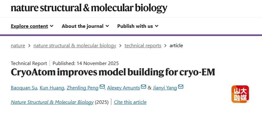 [本站讯]近日,山东大学数学与交叉科学研究中心、教育部非线性期望前沿科学中心杨建益教授团队在冷冻电镜(cryo-EM)原子结构建模算法研发中取得突破性成果,相关研究以“CryoAtom improves model building for cryo-EM”为题发表于Nature子刊Nature Structural & Molecular Biology。数学与交叉科学研究中心博士研究生苏宝泉为第一作者。中心教授杨建益、彭珍玲,德国明斯特大学Alexey Amunts为共同通讯作者。西湖大学生命科学学院黄坤为合作作者。