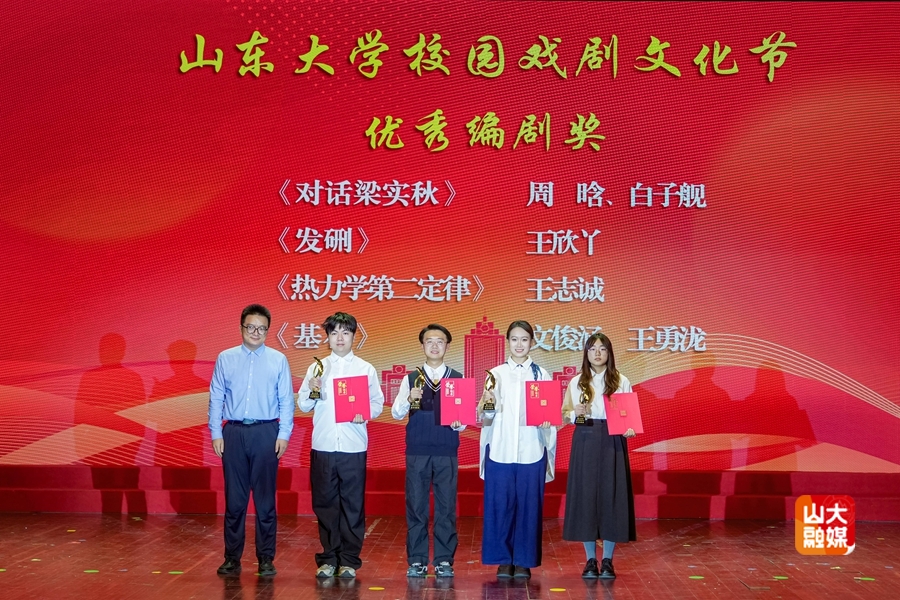 [本站讯]12月9日晚,山东大学首届校园戏剧文化节闭幕式暨优秀剧目展演活动在中心校区音乐厅举行。山东大学党委副书记张帅,国家一级导演杨琨出席活动。