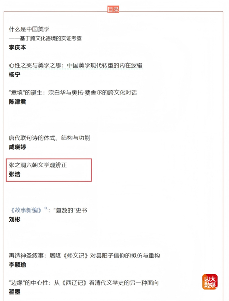 [本站讯]《文艺研究》2026年第2期刊发了文学院博士研究生张浩撰写的学术论文,题为《张之洞六朝文学观辨正》(起止页码:60—71)。