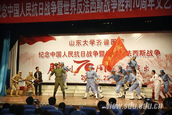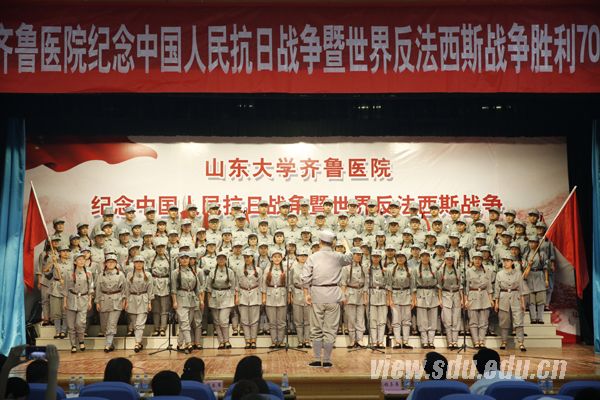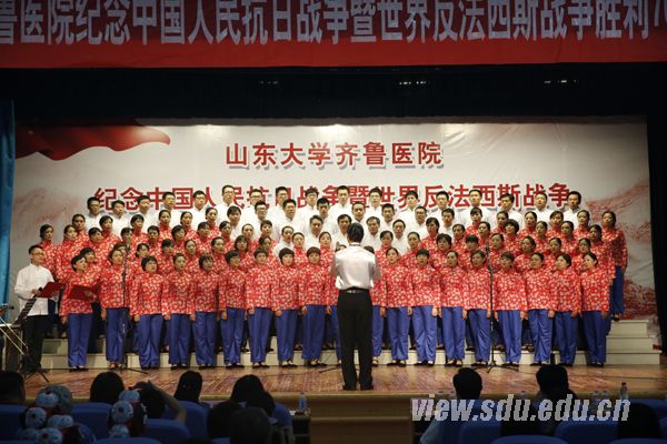 [本站讯]8月28日,齐鲁医院大礼堂内掌声阵阵,群情激昂,一场以“唱响抗战歌”为主题的纪念中国人民抗日战争暨世界反法西斯战争胜利70周年文艺演出在这里举行。医院党委书记曹宪忠、院长李新钢,齐鲁医学部常务副部长孔北华,院领导张万民、胡三元、李延青、苏华等出席了文艺演出。