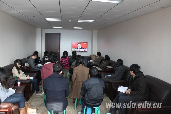 院领导、教师等在知新楼908教室收看党的十八大开幕式电视直播,本科生、研究生各党支部在中心校区餐厅地下一层、学生宿舍等地认真收看了直播及相关报道。在收看过程中,师生们聚精会神,态度严整,还认真做了笔记。胡锦涛总书记的报告令师生心潮澎湃。收看开幕式后,各党支部还开展了一系列的学习和讨论活动,老师和同学们畅谈了心情和感受。