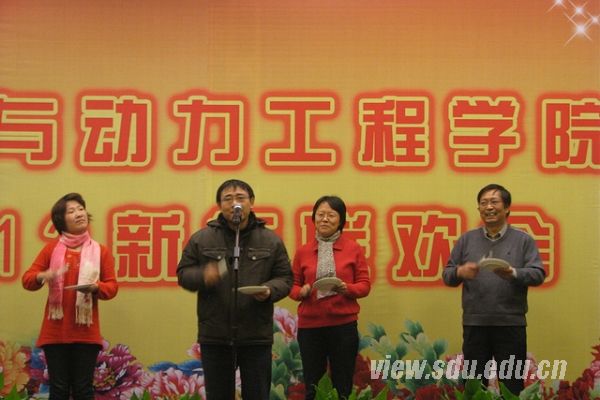 [本站讯]12月29日,能动学院2012新年联欢会在学府大酒店举行。学院全体在职教职工、离退休老教师、学生代表和曾经在学院工作学习过的特邀嘉宾欢聚一堂,共同迎接新的一年。校党委常务副书记尹薇出席联欢会,并向大家致以节日问候和美好祝福。