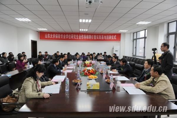 仪式上,胡金焱在致辞中感谢参会人员对学院工作的大力支持,并从学院概况、学科设置和人才培养等方面介绍了经济学院。他说,此次举办研究生合作导师聘任暨实践基地授牌仪式有利于完善学校保险人才培养体系,创新保险专业培养模式,提高保险人才培养质量。王新军从保险专业设置背景、设置特点以及研究生合作导师工作职责三个方面介绍了保险专业学位发展设想与工作情况,希望与各个保险公司加强合作,密切联系,共同促进保险行业专门人才的培养。各位研究生合作导师在讲话中提到,保险行业伴随改革开放得到恢复与发展,在经济发展与和谐社会建设中具有重要地位,被称为经济发展与社会进步的晴雨表;当前保险行业具有巨大的发展潜力,企业与学校进行合作,有利于将企业实务与理论知识结合起来培养保险人才。仪式由陈宏伟主持。泰山财产保险股份有限公司总经理张云翔、民安保险(中国)有限公司总经理助理齐登波,经济学院副院长刘国亮、党委副书记李维林、保险专业学位研究生负责人王新军,风险管理与保险学系主任任燕燕参加了仪式。