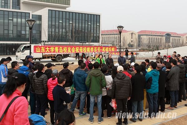12日,青岛校友会组织了150名各界校友到青岛校区参加校友返校植树活动。在植树仪式上,青岛校友会会长肖黎在致辞中讲述了青岛校友会参加校友总会发出小树林校友基金捐赠活动的组织情况。她说,青岛校友会第一批捐树245棵,红叶碧桃60棵,李子树500棵,紫叶稠李30棵,象征桃李满天下,流苏55棵象征源远流长,医药学校友捐赠的白玉兰50棵象征纯洁高尚的白衣天使,另外还有122棵青岛市花耐冬和2000株玫瑰将在后期栽种。青岛校区党工委副书记郭邦礼向广大校友对母校青岛校区建设的大力支持表示感谢,并介绍了青岛校区近期的建设情况和今年六个即将搬迁的学院的情况。校友工作办公室副主任于德宁介绍了青岛校区校友文化广场的规划设想和各地校友会的捐赠情况。老会长米永法和校友们共同挥动铁锹植下一棵棵爱心树。一对老夫妇校友医学58级赵振霄和60级王文清,以及62级校友贾森现场捐款3000元。副秘书长庚俸利说,我们今天种下希望,种下未来,也种下对母校的无限深情。药学94级校友刘华期待千万颗校友捐赠的小树苗伴随着学生们一起成长,期待山大在青岛这片土地上第三次崛起。100余名在校学生和校友们一起参加了植树活动。