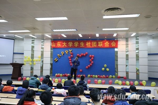 [本站讯]为了丰富同学们的课余生活,增进社团之间的交流,增强社团的凝聚力,由山东大学社团联合会主办的社团联谊活动在软件园校区举行。本次联谊活动的节目由各社团精心准备,他们的精彩演出赢得了在场观众的阵阵掌声,会场内气氛高涨。