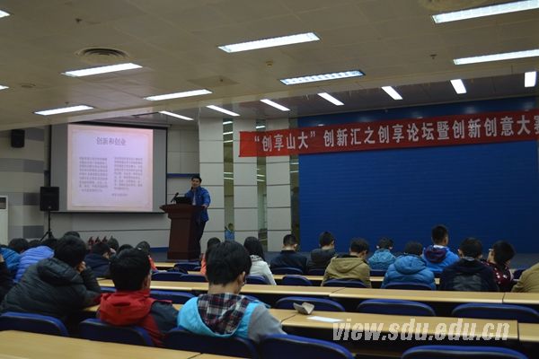 [本站讯]11月24日晚,山东大学“创享山大”系列活动创享论坛第一期在软件园校区举行。计算机应用博士、著名讲师、资深竞赛指导老师戴鸿君作为第一期论坛的主讲嘉宾,从比赛角度出发,为我们带来了关于学生创新与个人发展的精彩演讲。
