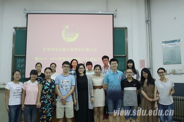 [本站讯]6月11日,外语学院第六届学生代表大会暨2014-2015学年学生组织工作表彰大会在洪家楼校区召开,外语学院党委副书记高弟出席会议。