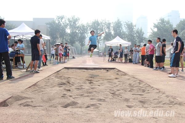 风起云涌,师生角逐竞技场。一百米预决赛是本次运动会开场大戏,由学生组开始,出色的爆发力在发令号响起瞬间便展露无遗,同学们加速冲刺向终点进发,奋力拼搏;而教师组比赛也同样精彩,虽已不复少年时代的血气方刚,但老师们更加懂得如何积蓄好力量,精湛的技巧与拼搏的精神让同学们鼓掌叫好。长跑比赛,路途虽远,选手们的脚步却未曾有过停滞,其中13级临五2班的本科生焦洋表现尤其出色,斩获男子800米和1500米双料冠军。在男子跳远比赛中,本科生王境一以6.10米破院运会记录的成绩夺得冠军。在其他赛场上,各位运动员都展示出了良好的竞技状态和比赛热情。