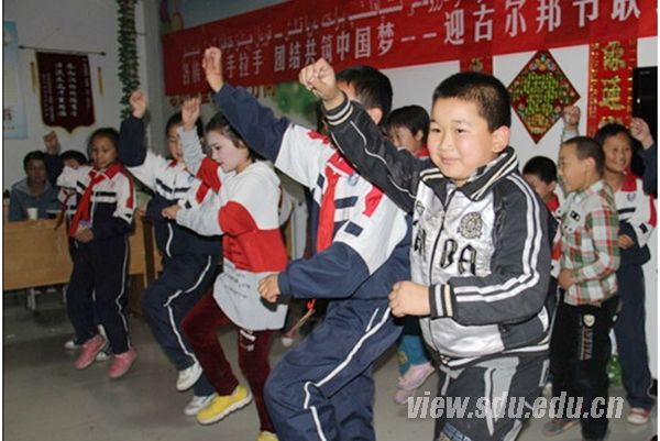 支教期间,团委组织了民族团结联谊会庆祝古尔邦节的到来。支教团成员利用契机,提前一个多星期鼓励学生表演节目,大胆展现自己。节目表演过程中,师生携手,赢得现场掌声不断。日常学习生活中,支教团成员关心学生安全,坚持每天送学生回家。“12·5志愿服务周”时,支教团集体筹划了“感恩之心、与孝同行”道德讲堂活动,引导辅导班学生常怀感恩,孝敬父母。在曲仪的引导下,辅导班的孩子们一起学习了《弟子规•入则孝》选篇,并完成孝道试卷。“道德讲堂”是红领巾爱心辅导班开设“精品课堂”的第一次尝试,也山东大学支教团创新支教方式的一个新起点。在伊犁州西部计划十周年文艺汇演中,支教团细心讨论每个节目。在支教团团长于新九的带领下,配乐诗朗诵《红领巾爱心辅导班的故事》经过一次又一次的排练,最终荣获本次文艺汇演一等奖。在伊宁县“我要上春晚”文艺汇演暨选拔赛中,配乐诗朗诵《红领巾爱心辅导班的故事》节目再次打动评委,感动选拔赛全场,最终获得伊宁县春晚的入场券。