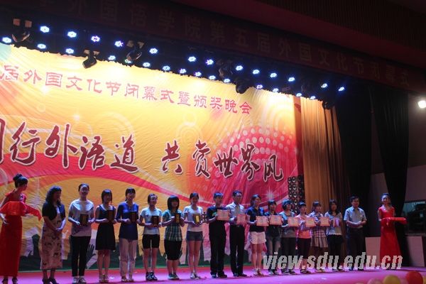 [本站讯]5月10日,外语学院第五届外国文化节闭幕式暨颁奖晚会在中心校区举行。山东大学团委书记王君松,外语学院院长王俊菊、党委书记兼副院长郑倩以及济南外国语学校副校长席向群、刘汉路等出席了晚会。