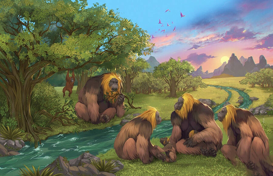 步氏巨猿生活场景复原图(Garcia / Joannes-Boyau 绘制)