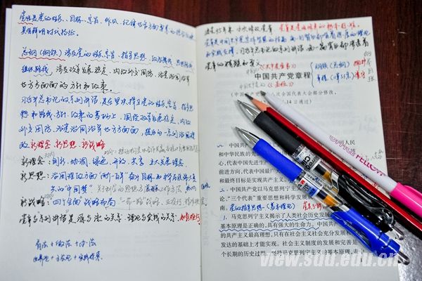 白向忠是一个爱学习,爱思考,善于积累,富有创新精神的人。记者发现,他的办公桌上摆着一摞书,桌子有些旧,书也都是翻旧了的。最近,他手头常翻的是党章。他的阅读,不仅是用眼睛浏览,还勤动脑思考、勤动手记录。书中不同颜色的笔迹,代表着不同的层次标注和不同时期阅读的思考,字迹认真工整、条理清晰明确,读来丝毫不乱。在他的电脑桌面上,有一份名为“读书笔记”的电子文档,这份文档建立于2005年,现在里面已经记了14万字。这14万字的读书笔记,被他称为“个性化的百科全书”,是他十几年如一日的积累,里面包含着大量的知识信息和自己的逻辑思维、辩证思维,量的积累已成为知识、思想的宝库,这使他的写作更加理性、全面、迅速。