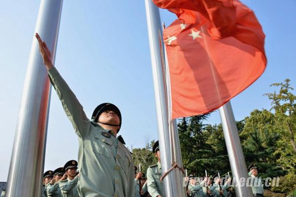 2014年10月1日,山东大学在国庆65周年之际举行了升旗仪式。映着初阳的五星红旗在郝江聪的手中迎风扬起,散成一团火。他说:“那一刻,我真的感觉到,我热爱我的祖国。”作为山大首个国旗护卫班的升旗手,每个星期一,郝江聪都会早早起床,“对着镜子捋去衬衣边上的褶子,扭正领花,一遍又一遍地调整大檐帽的位置”,慎之又慎。他希望,自己每一次都能做到最好。因为,他左肩上扛着的不仅仅是一面旗帜,更是自己的心潮澎湃和家国情怀。这份神圣,容不得半点亵渎。