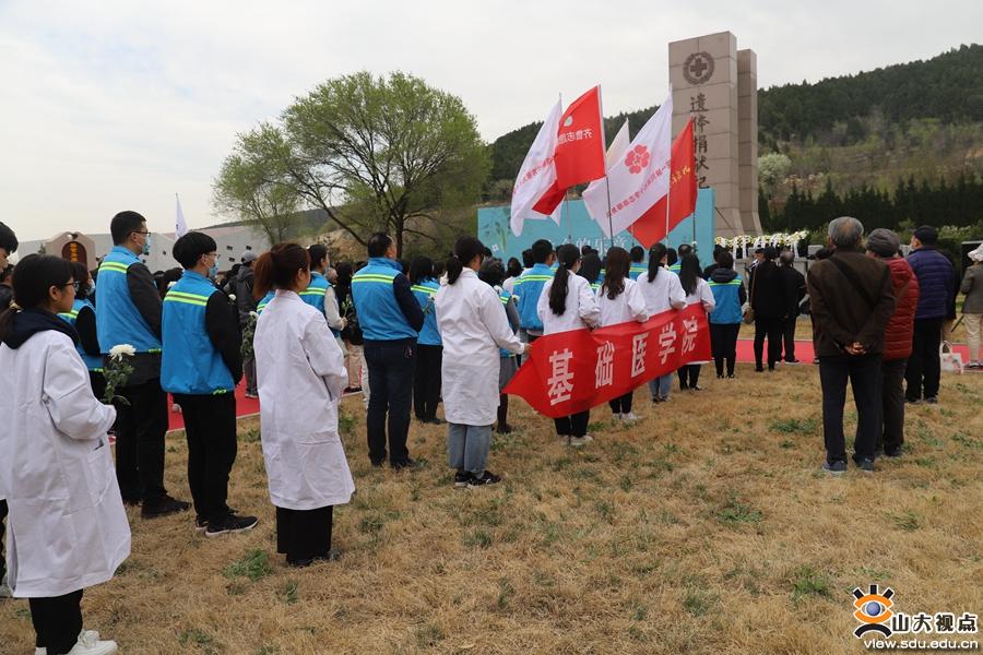[本站讯]4月1日上午,山东省济南市红十字会在长清福寿园遗体(器官、角膜)捐献纪念广场举行 “生命的乐章”——2021年捐献者清明节追思会。山东大学基础医学院部分教师、学生代表参加此次追思祭奠活动。